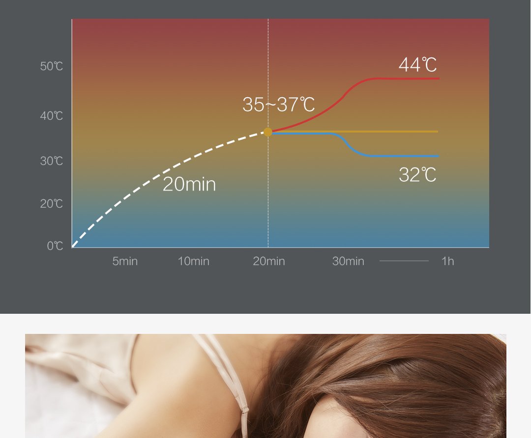 • قابلیت ها: سه دمای قابل تنظیم (از 32 تا 44 درجه سانتی گراد)، قابل شستشو، سیم شارژ قابل جداسازی (جهت شستشو)