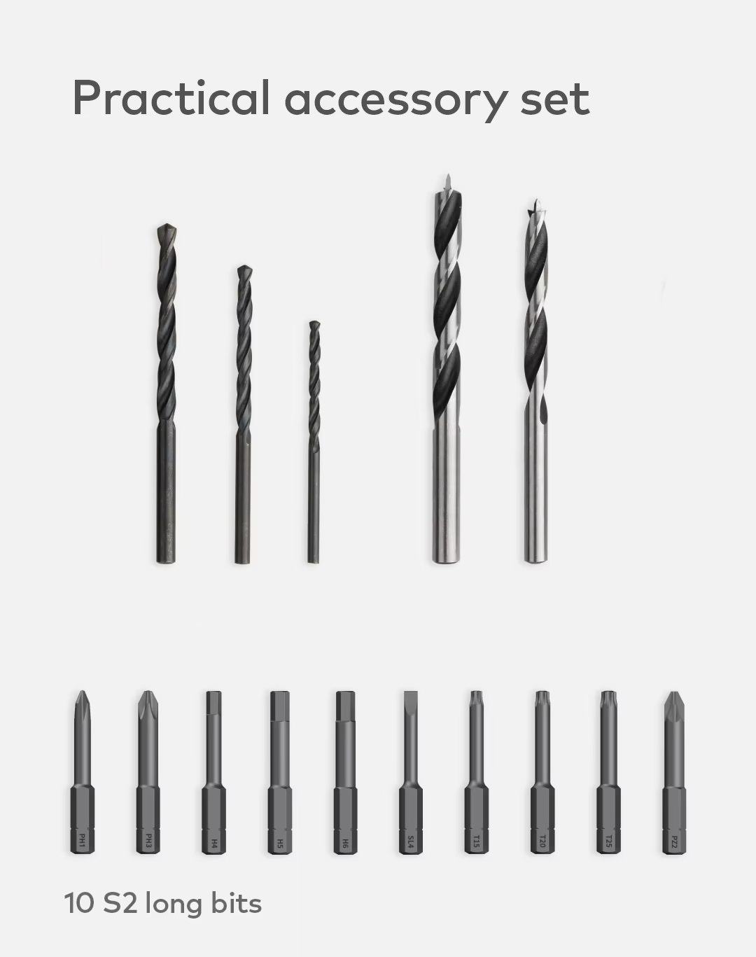 دریل شارژی شیائومی HOTO QWLDZTZ001 یک ابزار کارآمد و ضروری برای هر خانه یا محل کار است که به شما این امکان را می‌دهد تا به راحتی و بدون نیاز به کمک تعمیرکار، انواع کارهای تعمیراتی و ساخت و ساز را انجام دهید. این مجموعه شامل یک دریل شارژی و مجموعه‌ای از مته‌ها و سری‌های مختلف است که به شما امکان می‌دهد تا با توجه به نیاز خود، از آن‌ها استفاده کنید. طراحی جمع‌وجور و محکم این دستگاه، آن را به یک گزینه ایده‌آل برای حمل و نقل آسان و استفاده در مکان‌های مختلف تبدیل کرده است.