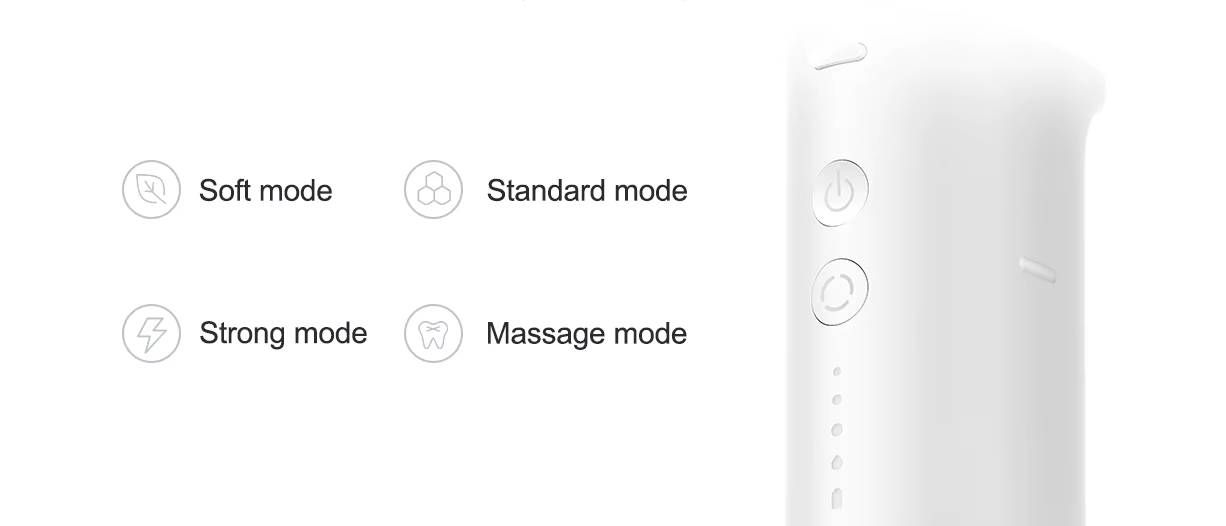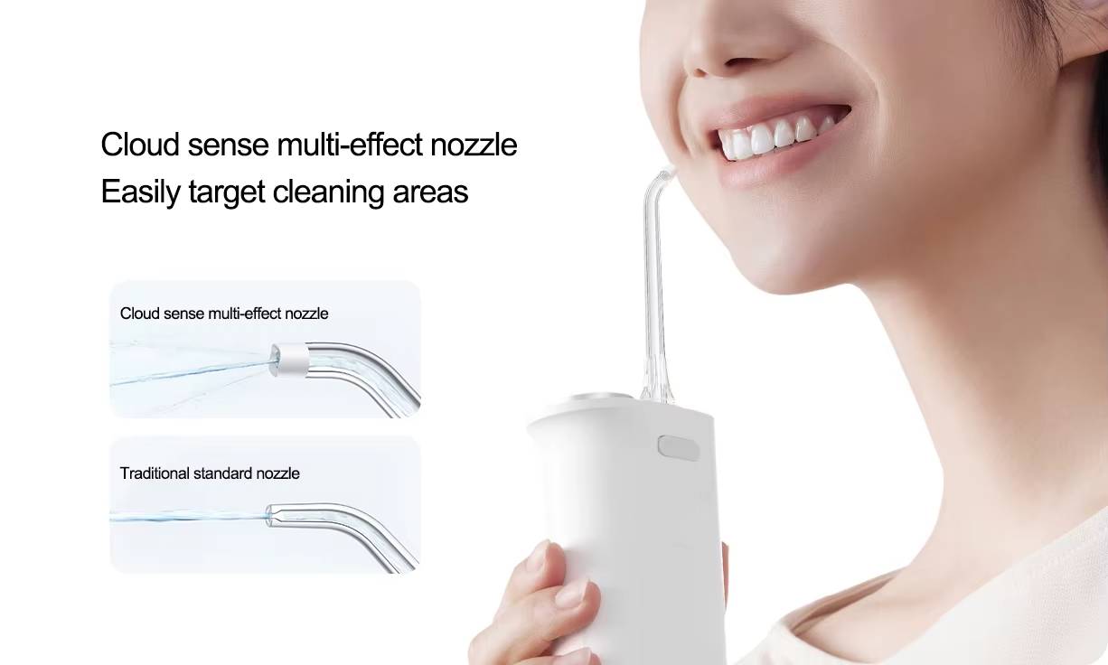 این محصول دارای چهار حالت مختلف شستوشوی دندان است که شامل حالت ملایم برای مبتدیان، حالت قوی برای تمیز کردن باقیماندههای سخت، حالت استاندارد برای نظافت روزانه و حالت ماساژ برای مراقبت از لثه در شرایط خاص میشود. همچنین، سه نوع نازل متفاوت برای نیازهای مختلف کاربران طراحی شده است؛ نازل چندمنظوره Cloud Sensing برای مبتدیان و لثههای حساس، نازل استاندارد برای تمیزکاری دقیق روزانه، و نازل ارتودنسی برای مراقبت از دندانهای ارتودنسی شده. مخزن آب 200 میلیلیتری دستگاه با طراحی قابل جدا شدن، امکان تمیزکاری کامل دهان را با یک بار پر کردن فراهم میکند.