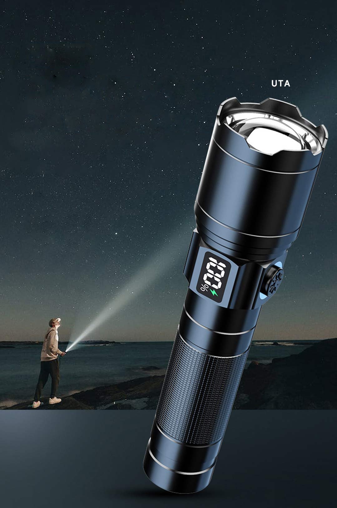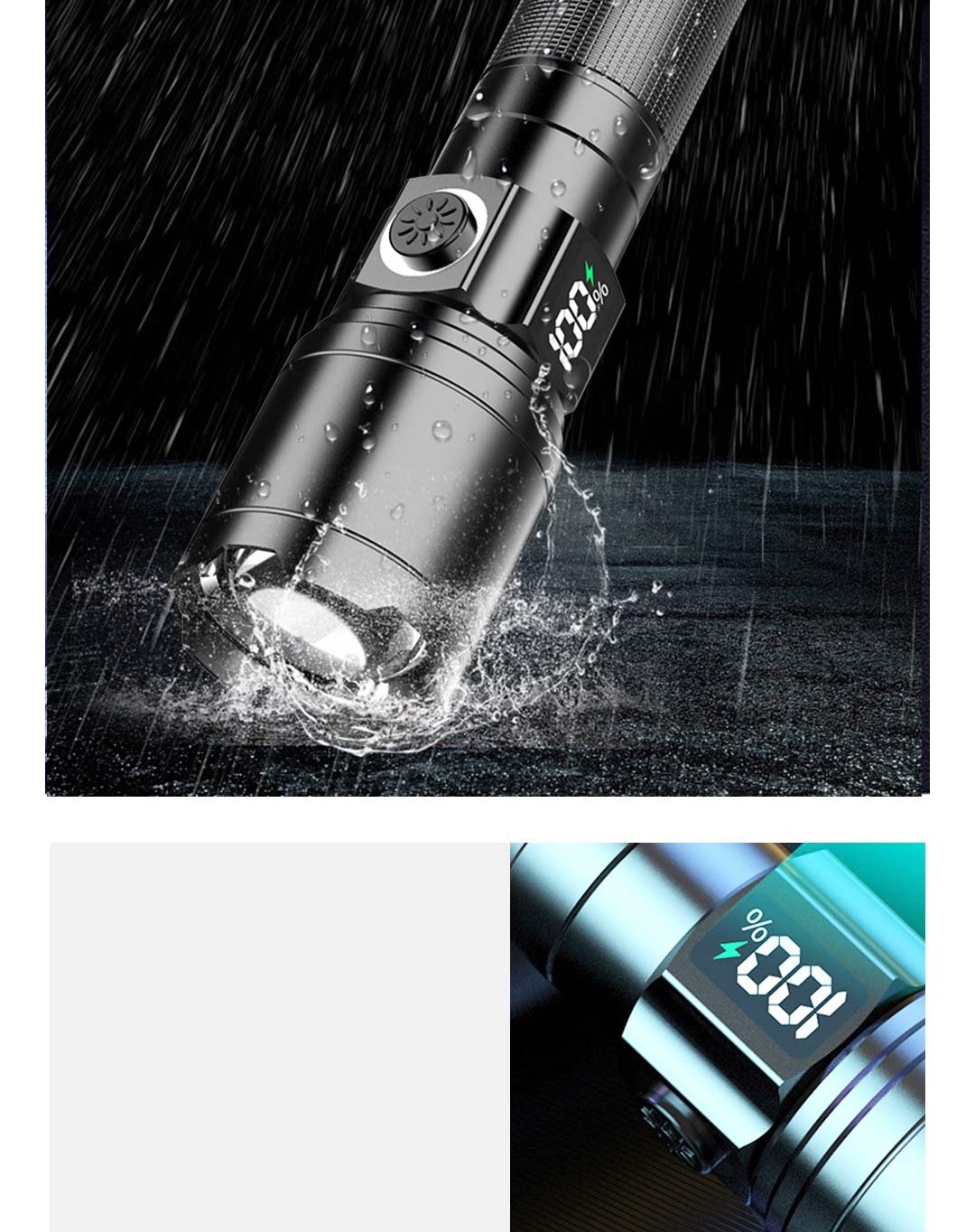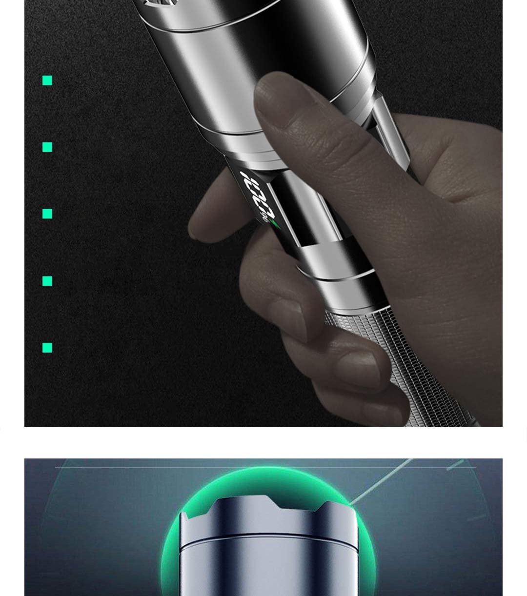 • امکانات: نمایشگر LCD ضد آب (نمایش باتری)، حالت Burst + SOS، قابل شارژ با پاوربانک، شارژر موبایل، شارژر فندکی، ضد آب