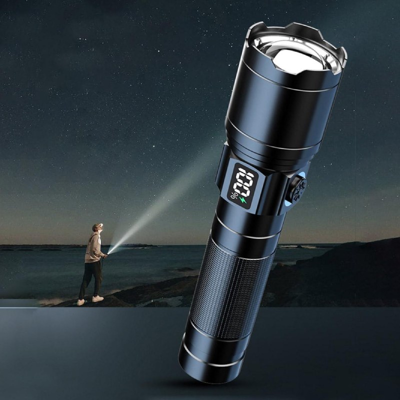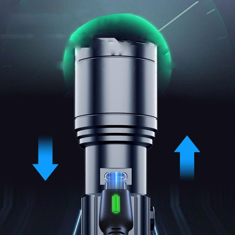 • امکانات: نمایشگر LCD ضد آب (نمایش باتری)، حالت Burst + SOS، قابل شارژ با پاوربانک، شارژر موبایل، شارژر فندکی، ضد آب