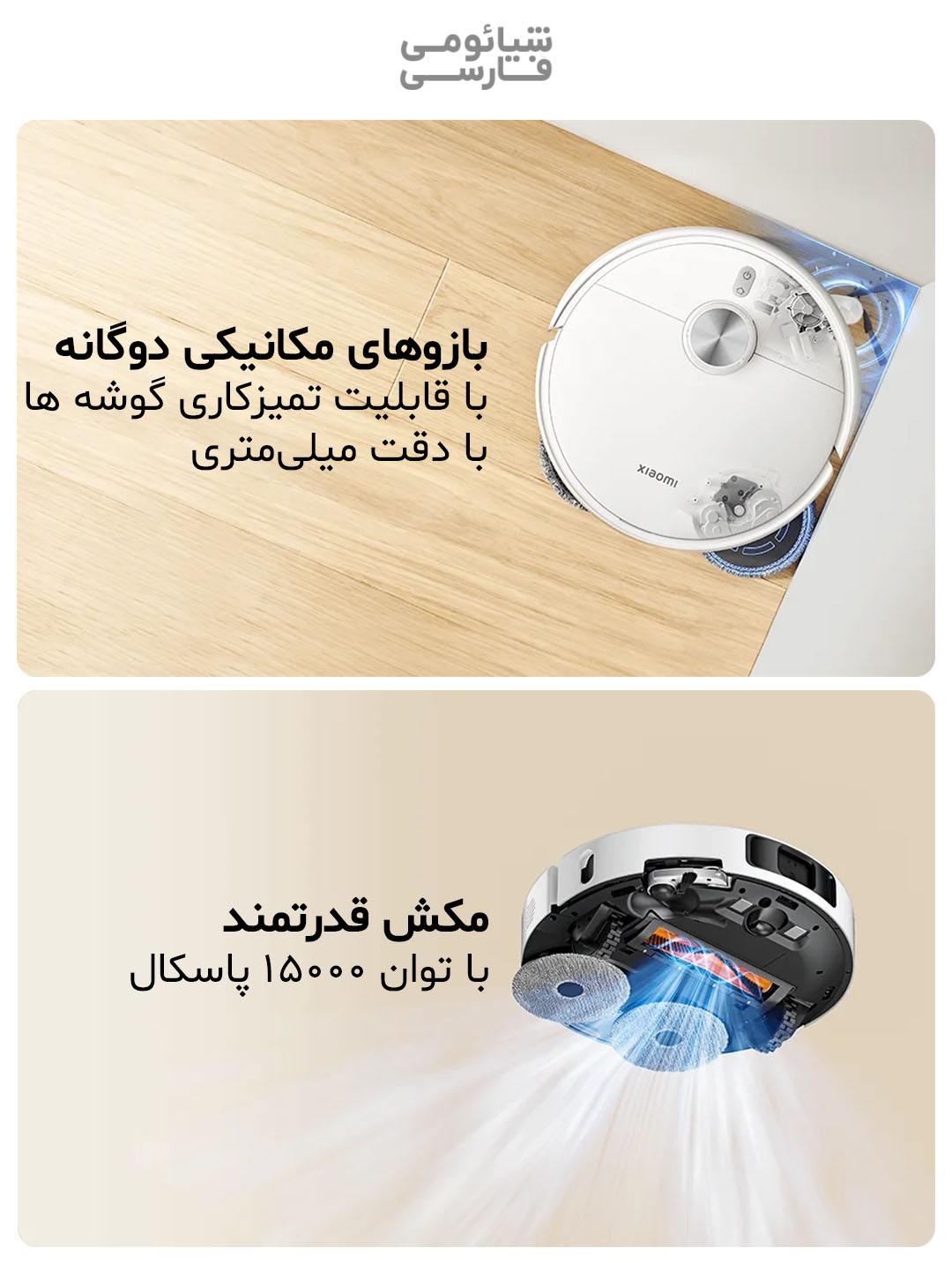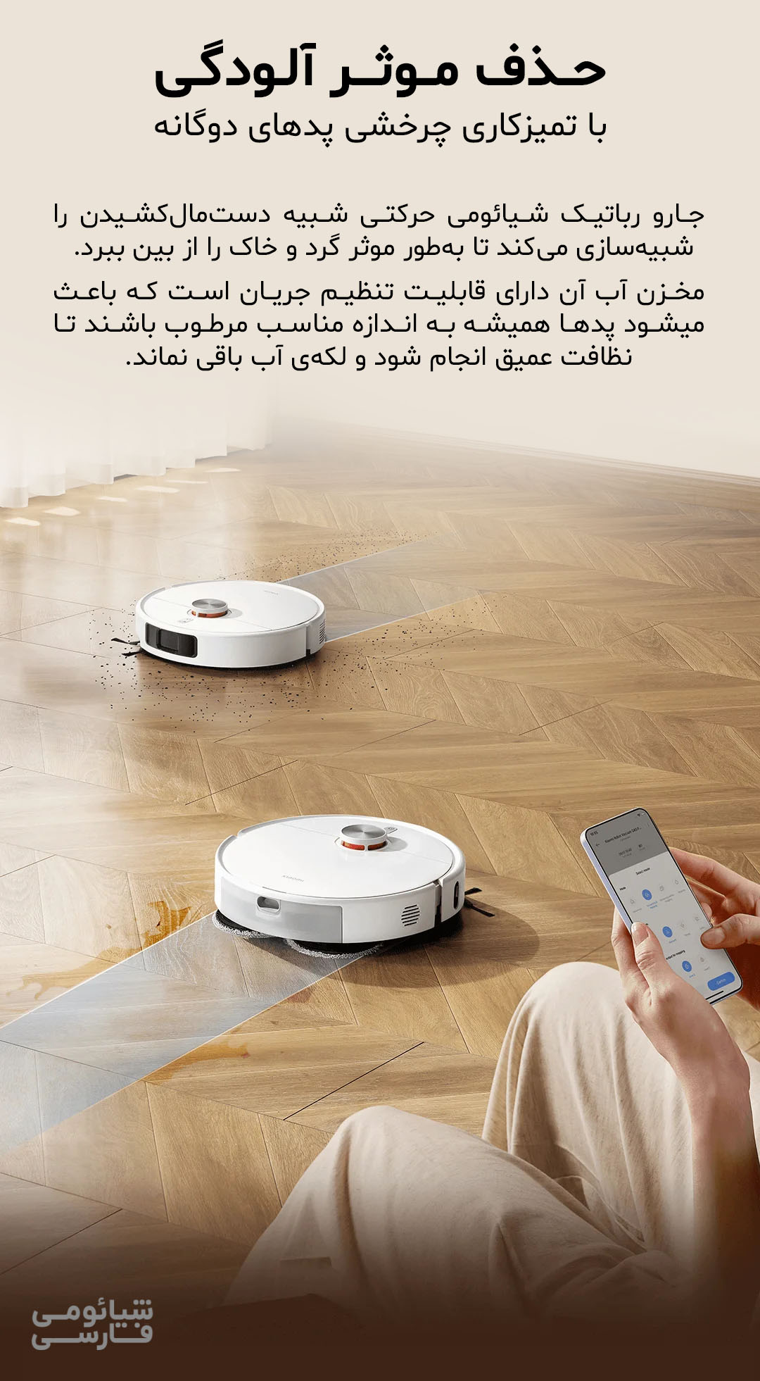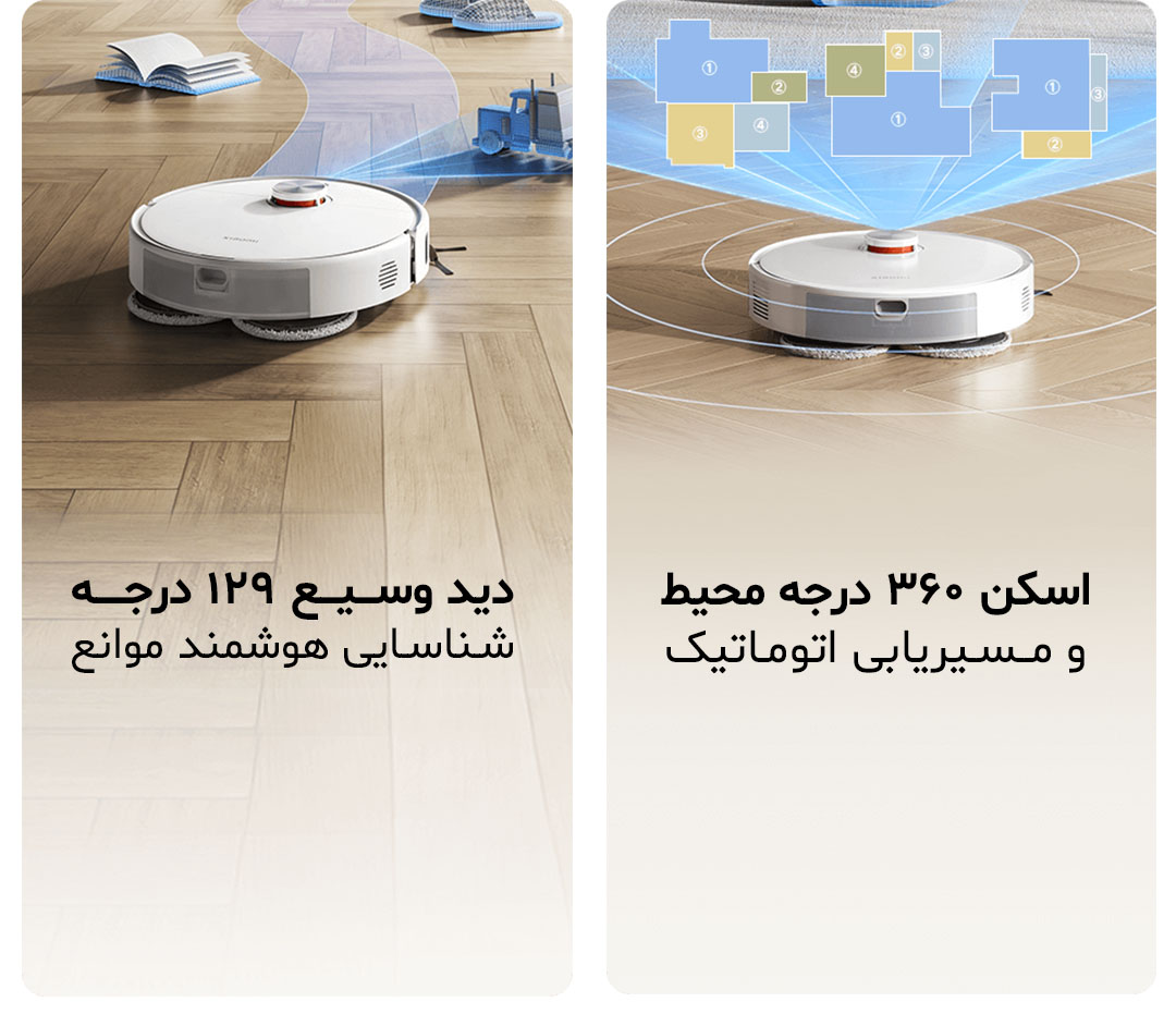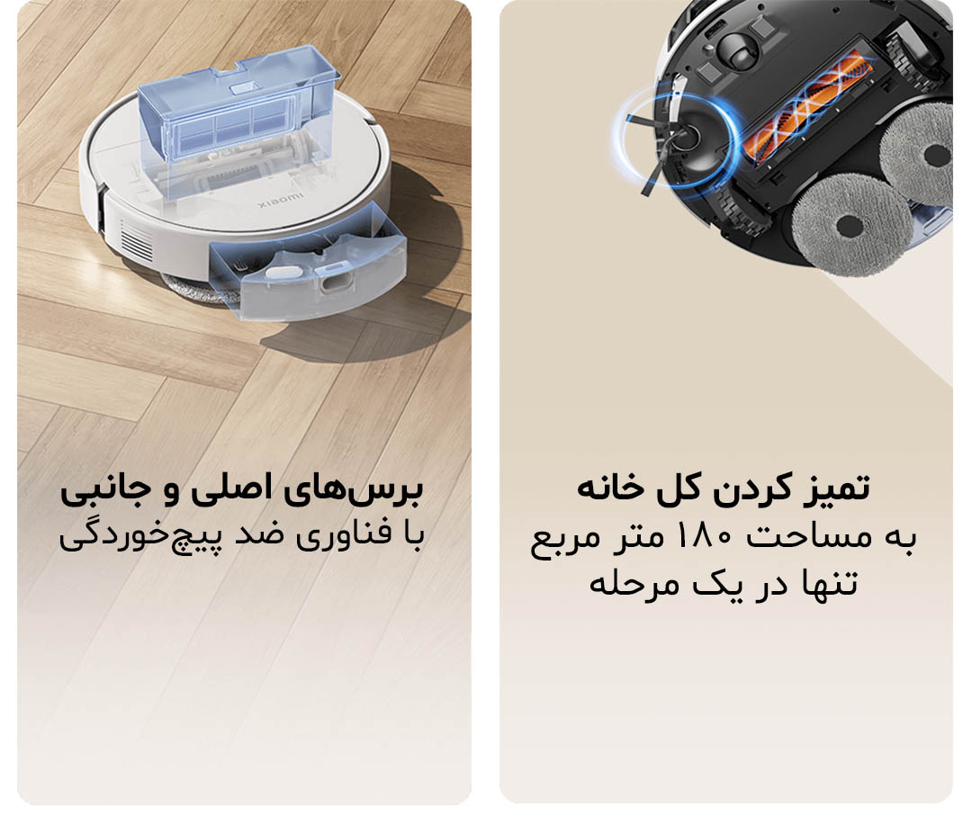 • حالت تمیزکاری: 4 حالت (فقط جارو، فقط تی، جارو قبل از تی، جارو+تی همزمان)